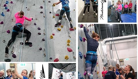 Jentene har festet grepet og klatrer trygt videre mot toppen. Denne gangen utenfor banen i Nordeuropas største... Les mer