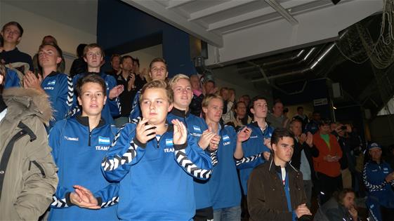 En flott stemning på den blå siden av tribunen, alle 97-gutta i nye "Interkretsvinner-gensere".