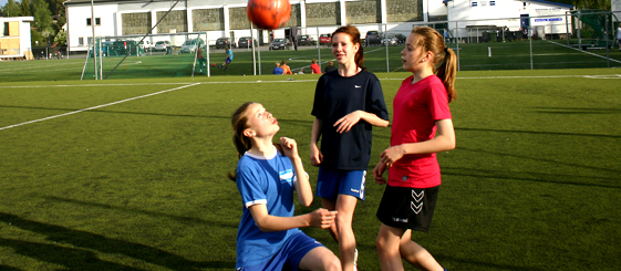 Mens vi snakker sammen ser vi en del gutter rundt omkring på Niffen som spiller fotball, og lurer på om jentene noen gang drar for å "hæppe" med ball selv.